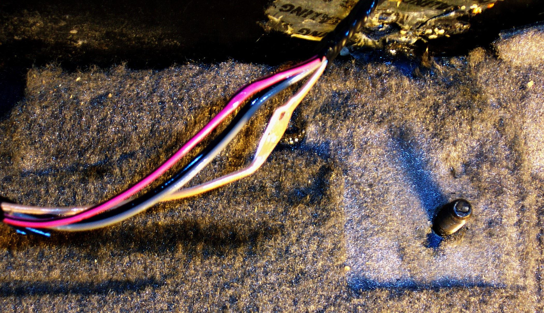 Short Circuit in the Wiring Harness This cable is for the SRC/FX3 shock absorber control system. It runs from the switch down under the left side of the tunnel to the left storage compartment where it connects to the controller. The SRC had an error 41. This is defined as a short circuit on the switch sensing voltage wire. In the past someone had removed the carpeted panel that covers the left side of the tunnel. When the panel was reinstalled, a connector from another cable was allowed to lie on top of the SRC switch cable. After the panel was installed the seat crushed the connector on top of the SRC cable and pressed the cable against the metal rear tunnel panel with a huge force. The crushing pressure caused the wire insulation to cold flow and then the wire made an electrical connection to the chassis. The short was identified by disconnecting the cable at the SRC controller and at the switch. A resistance measurement was made from chassis ground to each of the wires in the cable. Each wire should read infinite resistance because the cable was disconnected on both ends. One wire measured 2 ohms to the chassis.