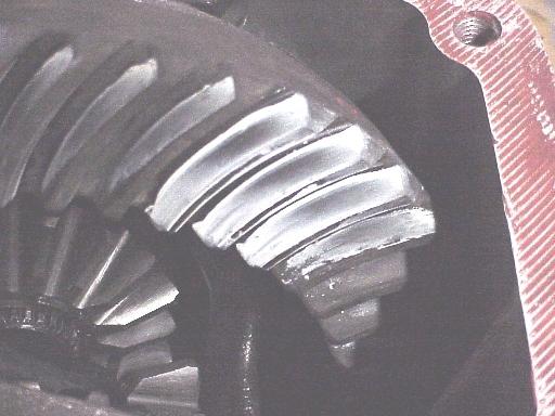 The Dana gears will run quietly if a contact pattern like this is obtained. A good contact pattern is large and has rounded edges. Over the years Bob and I have installed over 95 of these gear sets.
